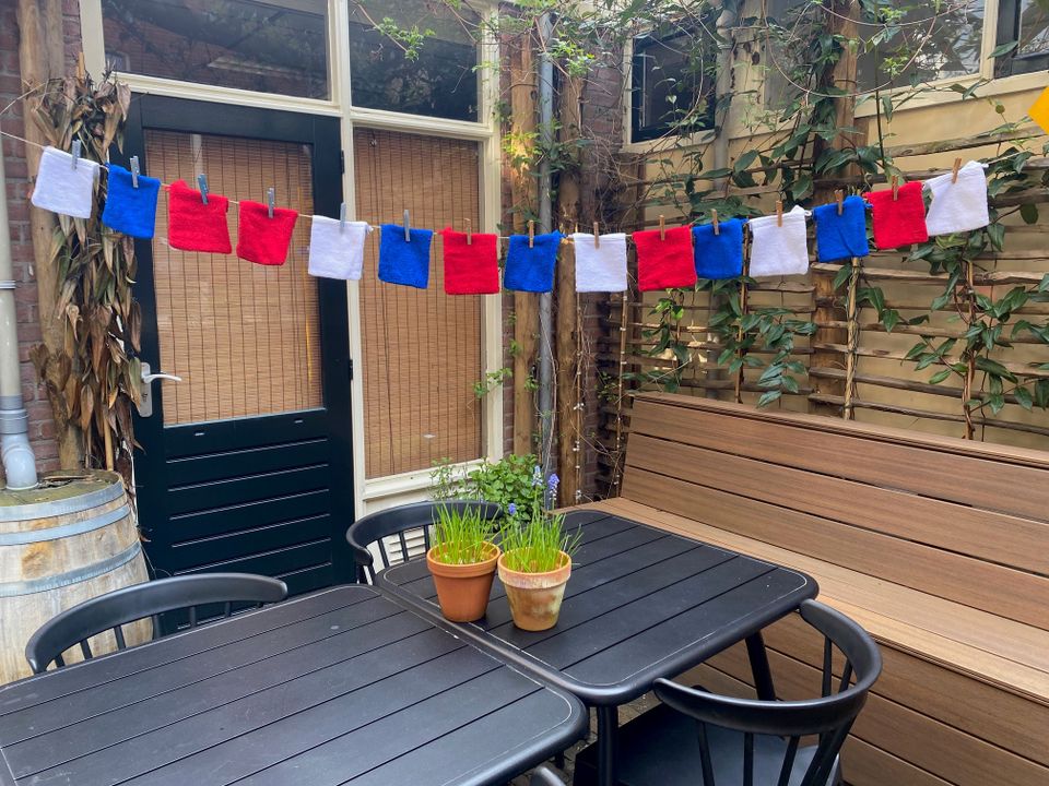 We hebben pakketten samengesteld met duurzamer drukwerk, washandjes van biologisch katoen en knijpers van bamboehout. Voor deze bewustwordingsactie gaan we vlaggenlijnen maken van witte washandjes afgewisseld met rode washandjes en blauwe flyers. Een vrolijke rode, blauwe en witte lijn: de huisstijlkleuren van Friesland.
